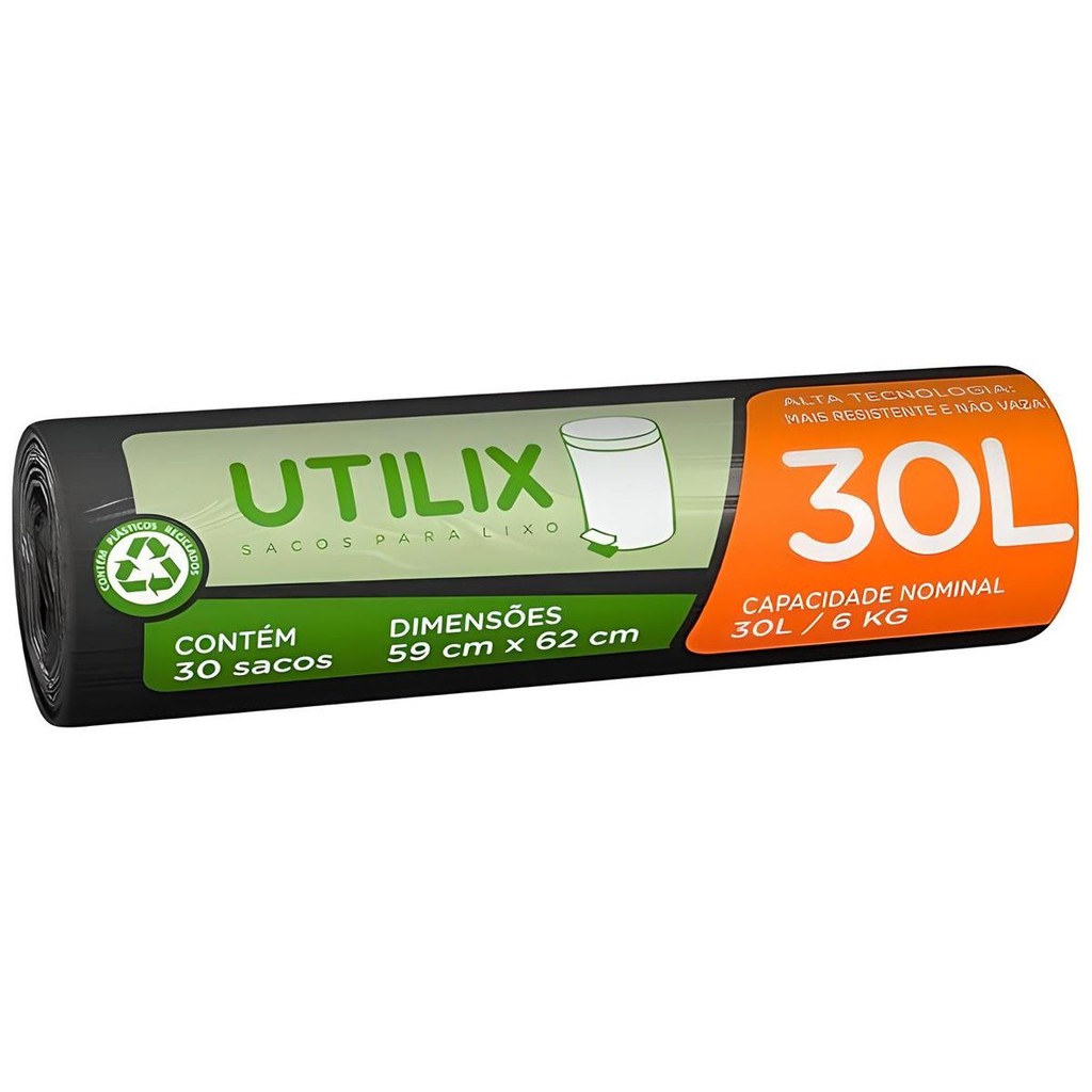 Saco Para Lixo Preto 30L 30un Utilix - Dover Roll
