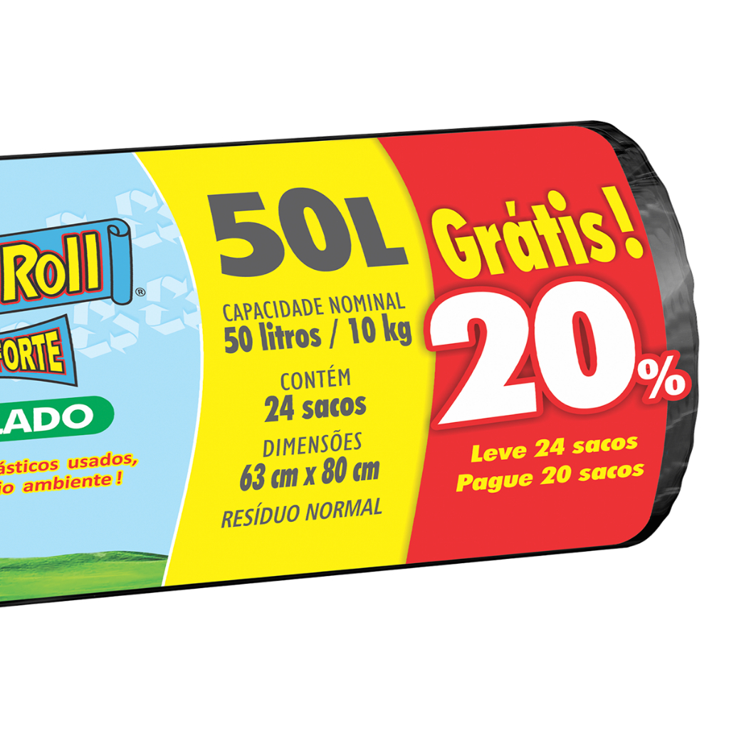 Saco Para Lixo Super Forte Reciclado 50L 20un + 20% - Dover Roll