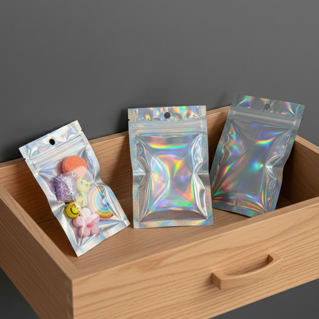Saco plástico holográfico para acessórios. 50 unidades.
