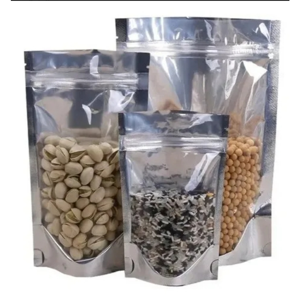 DESCRIÇÃO Cor: Metalizado Prata Material: Plástico e Aluminio Categoria: Embalagens Origem: Importado Contém 50 unidades por pacote NÃO PERSONALIZAMOS O Saco Stand Up Pouch Zip Alumínio Hermético com Visor é a solução para a conservação e segurança dos alimentos evitando a perda da cor, sabor e odor. O Saco Stand Up Pouch Zip Alumínio Hermético com Visor é brilhante de alta qualidade e resistência, com visor para que o produto embalado possa ser visualizado, os sacos são em formato stand up pouch com ziper zip. Podem ser utilizados para alimentos, produtos naturais, doces, grãos, condimentos, pet food, insumos farmacêuticos, joias, embalagem de presentes, produtos veterinários e químico. Embalado em pacote de plástico polipropileno extra brilho. Medidas e Quantidades 9x14+3 cm - pacote com 50 peças Capacidade volume: 90ml Gramas de café: 40g 10x15+3 cm - Pacote com 50 Peças Capacidade volume: 150ml Gramas de café: ~70g 12x20X4 cm - Pacote com 50 Peças Capacidade volume: 270ml Gramas de café: ~120g 14x22+4 cm - Pacote com 50 Peças Capacidade volume: 480ml Gramas de café: ~200g 16x24+4 cm - Pacote com 50 Peças Capacidade volume: 795ml Gramas de café: ~350g 18x26+4 cm - Pacote com 50 Peças Capacidade volume: 1,150L Gramas de café: ~510g 20x30+4 cm- pacote com 50 peças Capacidade volume:1,4L Gramas de café:620g