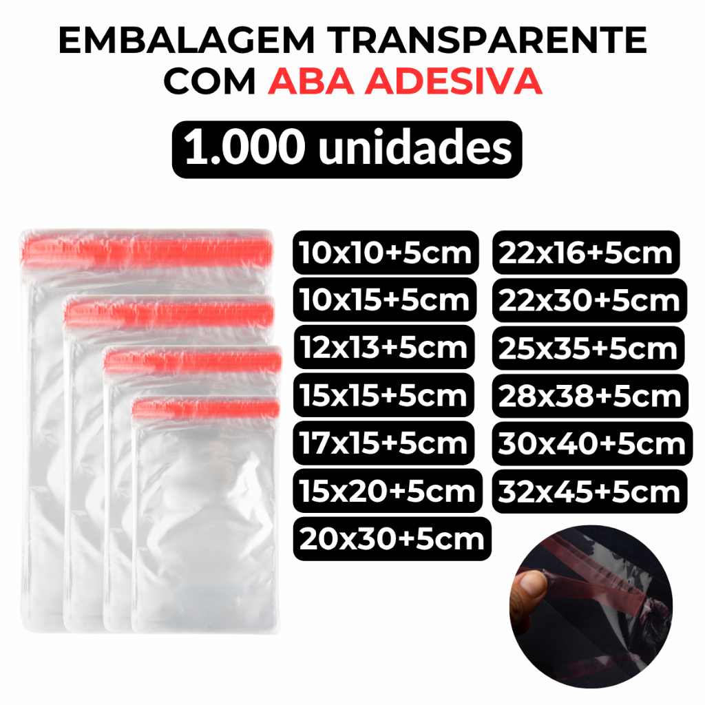Saco Transparente 1000un com Aba Adesiva Embalagem Pp Resistente para Loja e Envio