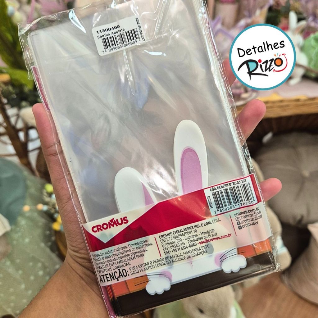 Saco Transparente Coelho Adoleta 11 X 19,5 - 50 unidades - Cromus Páscoa