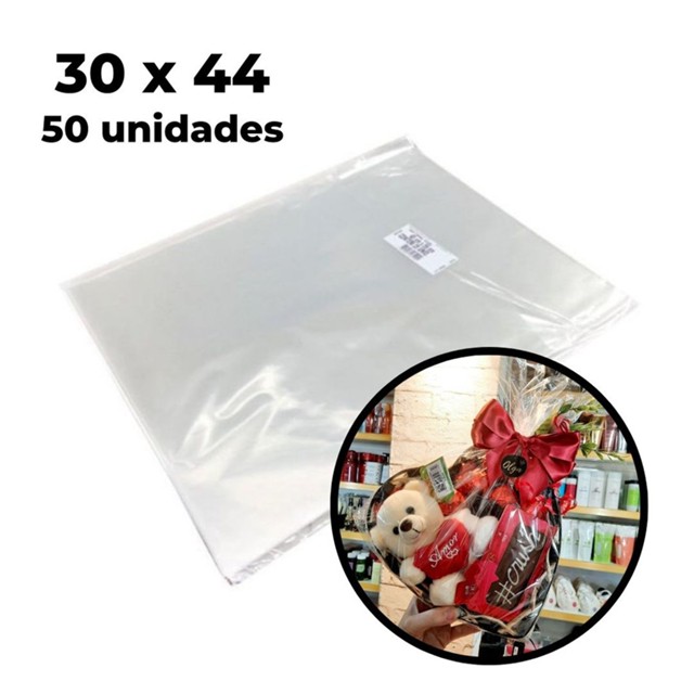 Saco Transparente para Cestas e Presentes 30x44 com 50un - Boop - Celofane - Poli - Incolor