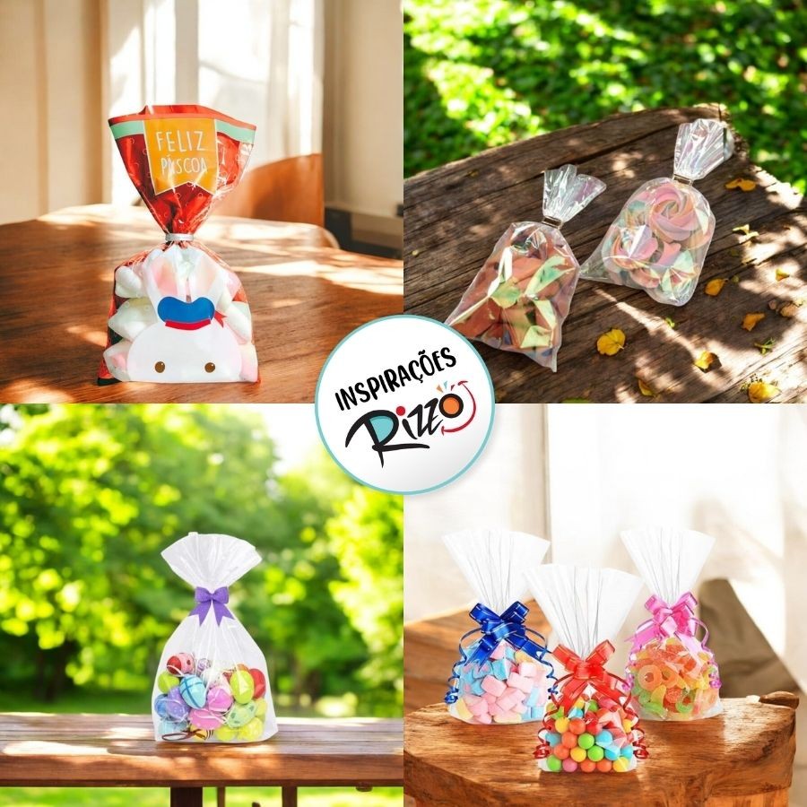 Saco Transparente Poli De Páscoa - Contos De Páscoa Azul - 11x19x5cm - 50 unidades - Cromus - Rizzo.