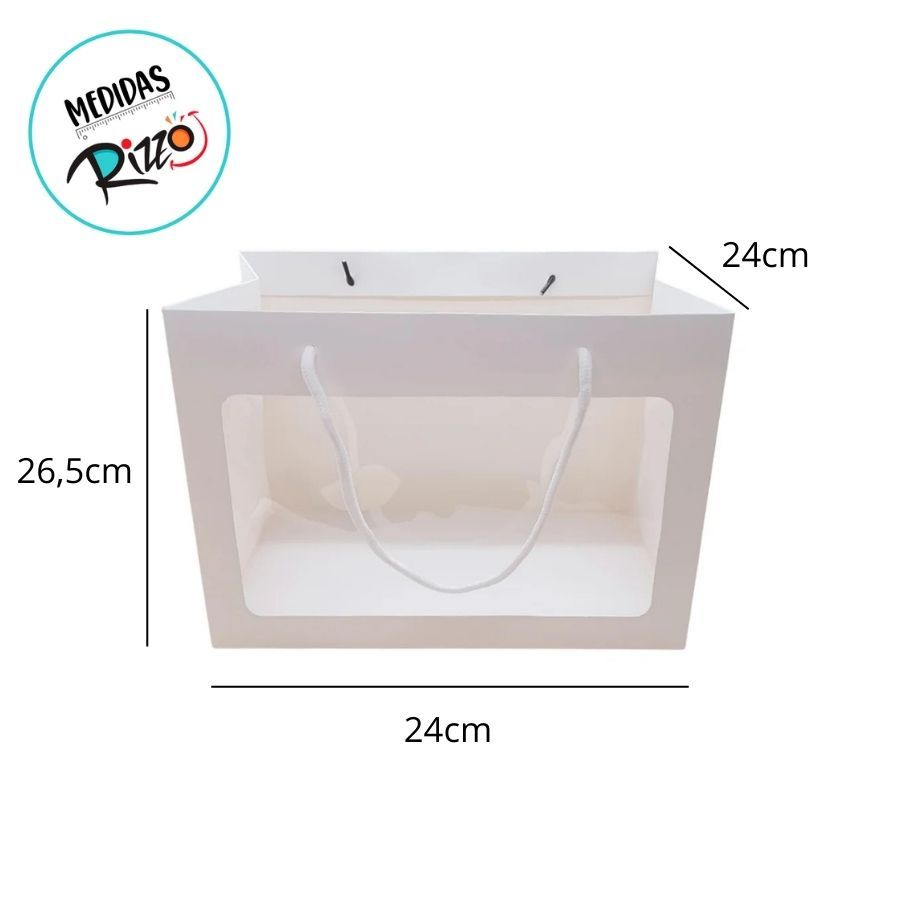 Sacola de Papel com visor de PVC 24x24x26,5cm - Branca - 1 unidade - Rizzo