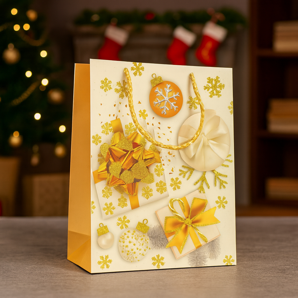 A Sacola de Papel Decorada Natal Branca 18x23x10 é a escolha perfeita para quem deseja presentear com elegância e charme durante o Natal. Com um design sofisticado e detalhes dourados em relevo, ela combina o espírito natalino com um toque de requinte, transformando qualquer presente em uma lembrança inesquecível.