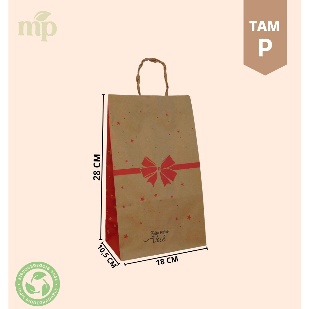 MOURA PAPERS Você está prestes a descobrir uma maneira única de elevar o valor dos seus produtos e proporcionar uma experiência memorável aos seus clientes. Nossas sacolas Kraft tamanho PP ,P ,M ,G ,GG com um laço vermelho no centro são mais do que apenas embalagens; elas são a expressão de cuidado, atenção aos detalhes e um toque especial que fará seus clientes se sentirem especiais. Entenda por que esse diferencial é crucial para o sucesso do seu negócio e como nossas sacolas podem fazer toda a diferença. **Informações do Produto:** - Dimensões PP : Com 22cm de altura, 18cm de largura na frente e 10,5cm nas laterais, Tamanho ideal para pequenos e médios presentes. - Dimensões P : Com 28cm de altura, 18cm de largura na frente e 10,5cm nas laterais, Tamanho ideal para pequenos e médios presentes. - Dimensões M : Com 32cm de altura, 24cm de largura na frente e 11,5cm nas laterais, Tamanho ideal para pequenos e médios presentes. - Dimensões G : Com 29cm de altura, 30cm de largura na frente e 19cm nas laterais, nossas sacolas oferecem espaço suficiente para acomodar diversos itens, mantendo-os seguros e organizados. - Dimensões GG : Com 44cm de altura, 31cm de largura na frente e 12,5cm nas laterais, Tamanho ideal para médios e grandes presentes. - Opção Nova (monte seu Kit) Este anuncio tem 4 tamanhos disponíveis para serem escolhidos para montar o seu kit variado PP-P-M-G-GG - Resistência Notável: Suportando até 3kg de peso, você pode confiar que suas mercadorias chegarão aos clientes com segurança, sem preocupações. - Sustentabilidade em Foco: Nossas sacolas são ecológicas, fabricadas no Brasil, contribuindo para a preservação do meio ambiente e gerando empregos locais. - Toque de Estilo: Detalhes exclusivos como a lateral vermelha com estrelas, o laço vermelho no meio da sacola e a frase "feito para você" conferem um charme único e inesquecível. - Alças Torcidas Confortáveis: As alças torcidas tornam o transporte fácil e confortável, garantindo que seus clientes carreguem seus produtos de forma prática. Agora que você conhece o potencial dessas sacolas Kraft com toque de elegância, imagine como elas podem elevar a percepção de seus produtos aos olhos de seus clientes. Afinal, apresentar suas mercadorias em embalagens especiais é mais do que uma simples entrega, é um gesto que demonstra cuidado e valorização. Garanta a satisfação do seu público, impulsione suas vendas e crie lembranças inesquecíveis. Não perca a chance de adquirir nossas sacolas Kraft PP ,P ,M ,G ,GG e transformar cada venda em uma experiência única. Faça seu pedido agora e veja a diferença que nossos produtos podem fazer para o seu negócio!