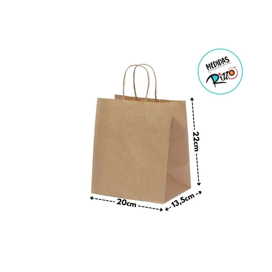 Sacola de Papel Kraft - Natural - 20x13,5x22cm - 10 unidades - Rizzo