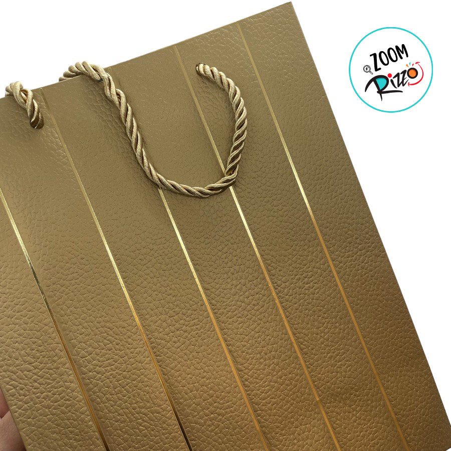 Sacola de Papel para Presente Listras Almofadadas - Dourada - 32x26x12xcm - 1 unidade - Rizzo