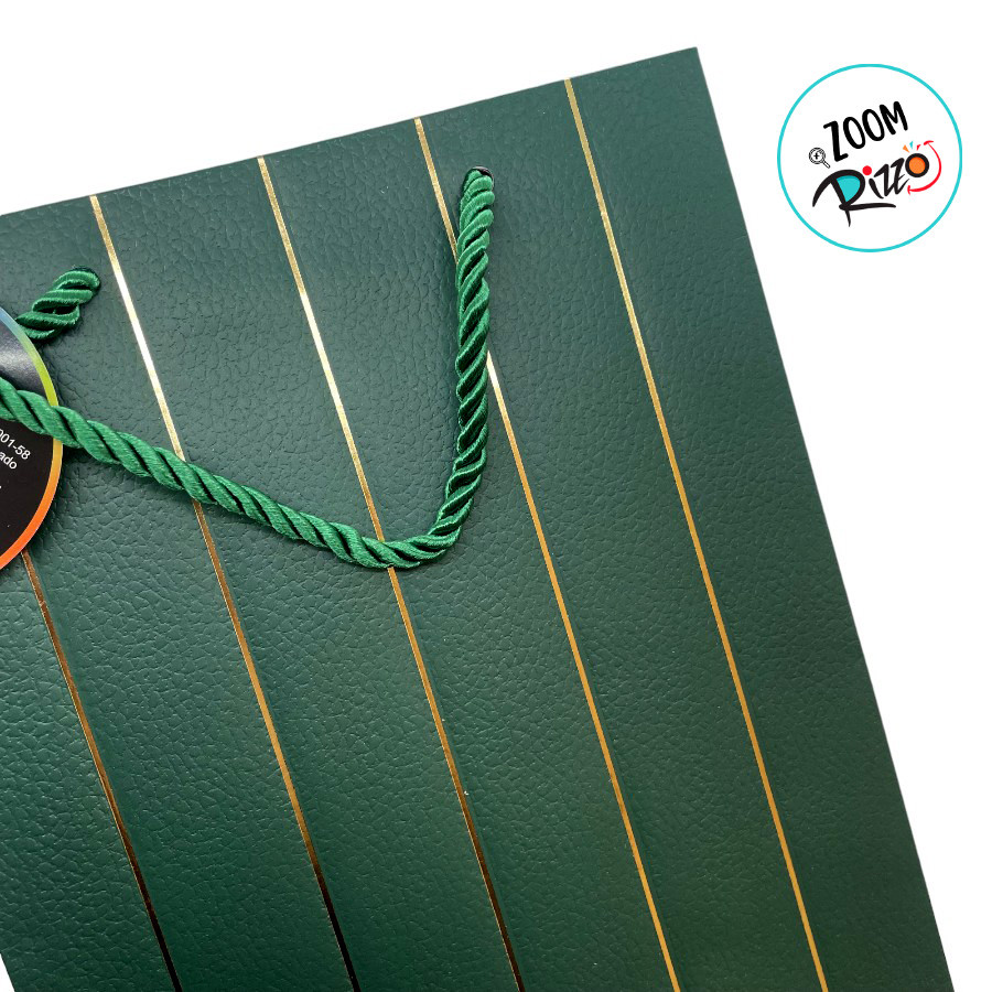 Sacola de Papel para Presente Listras Almofadadas - Verde - 23x18x10cm - 1 unidade - Rizzo