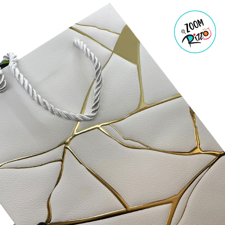 Sacola de Papel para Presente Marmorizada - Branca - 23x18x10cm - 1 unidade - Rizzo