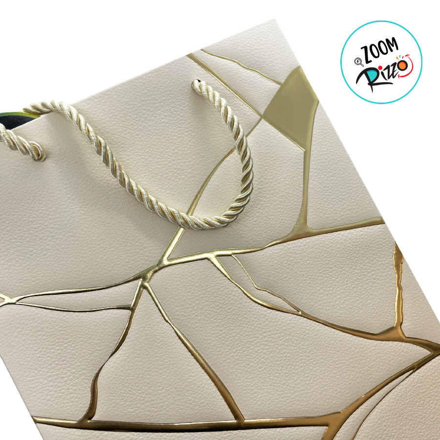 Sacola de Papel para Presente Marmorizada - Creme - 32x26x12cm - 1 uni. - Rizzo