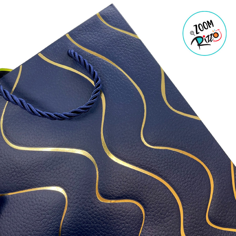 Sacola de Papel para Presente Ondas Almofadadas - Azul - 23x18x10cm - 1 unidade - Rizzo