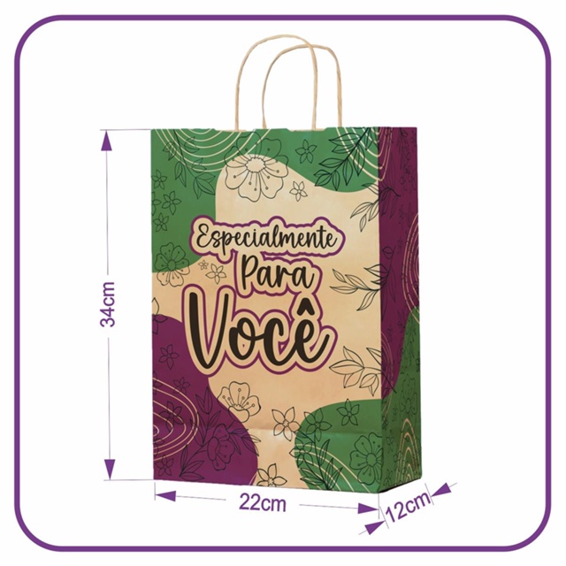 Sacola Kraft Especialmente para Você - 10 Unidades - M (22x12x34)