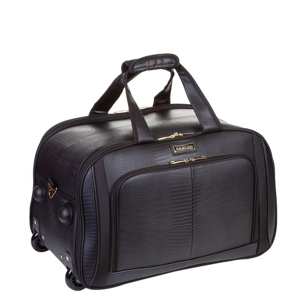 A linha Croco apresenta uma diversidade de produtos, feitos em PVC e poliéster, que trazem para as malas e Sacolas o ar contemporâneo e atemporal das peças de vestuário e acessórios. A Sacola com carrinho embutido é super prática e ainda vem com alça carona para levar junto com a mala. Este produto tem bolso lateral com ampla abertura e muito espaço interno, com divisórias e bolso em redinha com fecho de zíper. Possui a Altura: 30 Cm - Largura: 54 Cm - Profundidade: 30 Cm - Peso: 2,6 KG - Capacidade Total: 49 L