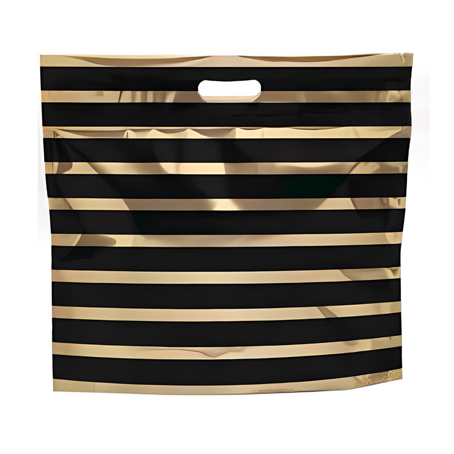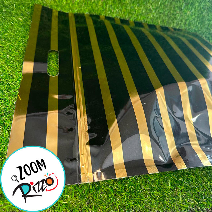 Sacola Metalizada com Zip - 46x43x5cm - Listrado Preto/Dourado - 1 unidade - Cromus