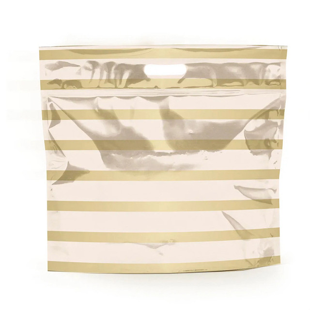 Sacola Metalizada com Zip - Listras Marfim/Ouro - 1 un. - Cromus - Rizzo