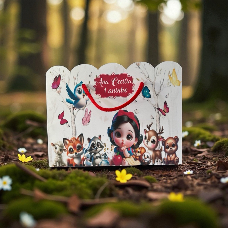 SACOLA ONDULADA GRANDE PEGUE E MONTE FESTA INFANTIL BRANCA DE NEVE Baby