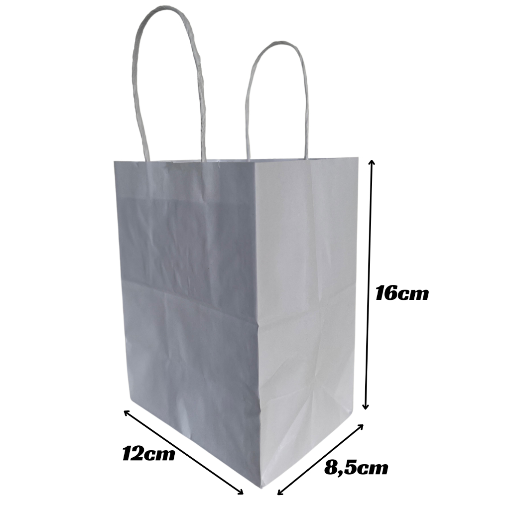 Sacola Papel Kraft Branca Pequena 12x8,5x16 Loja Presente Lembrancinha Semijoias Acessórios Doces