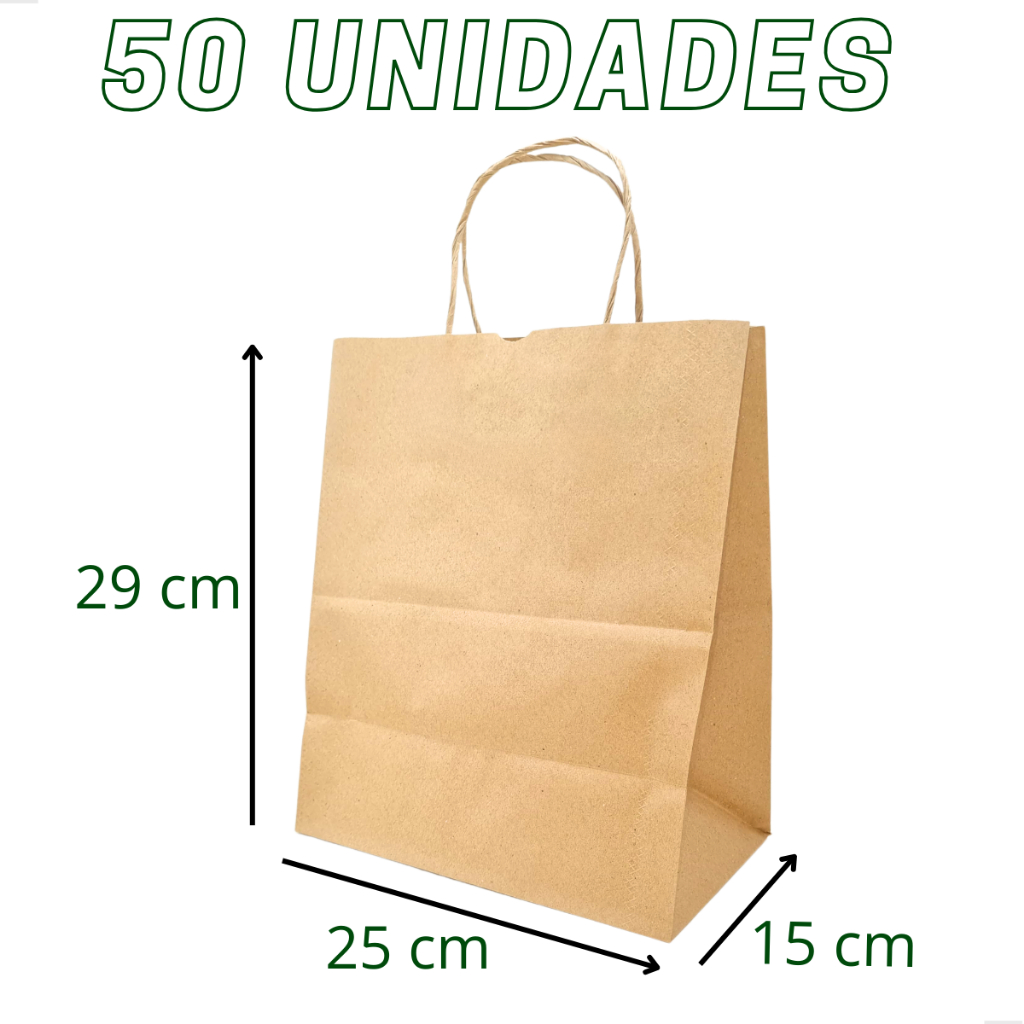Sacola Papel Kraft Delivery Com Alça 25x15x29 Cm (50 Un)
