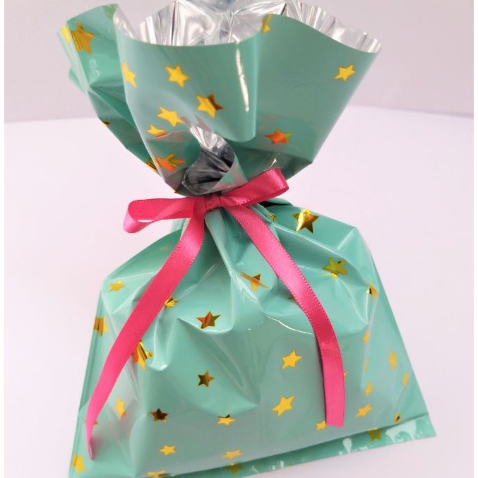 Sacola Plástica 17x25 cm Estampada Estrelas Boca de Palhaço, Pacote com 10 un. Várias Cores