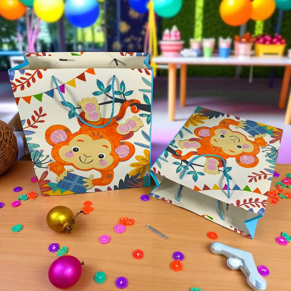 Sacola Presente Baby Zoo – Estampa Divertida E Resistente - Tema Safari - 32cm x 26cm