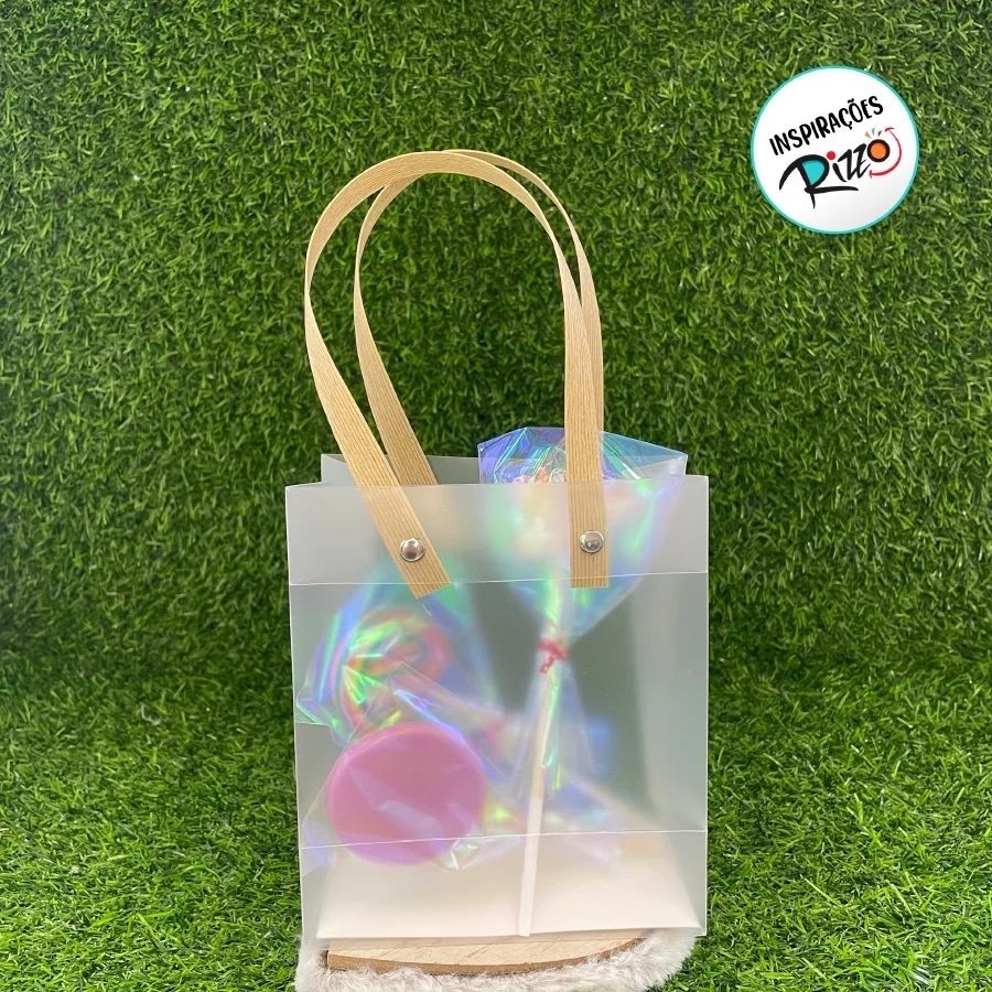 Sacola Transparente Fosca com Alça de Fibra - 20x17x8,5cm - 10 unidades - Rizzo