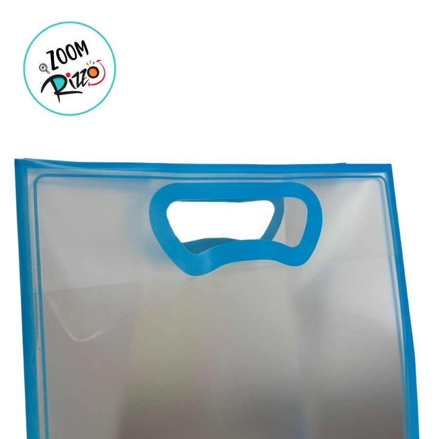 Sacola Transparente Fosca Pvc Alça Plana Azul Claro - 30x23x15cm - 10 unidades - Cromus - Rizzo