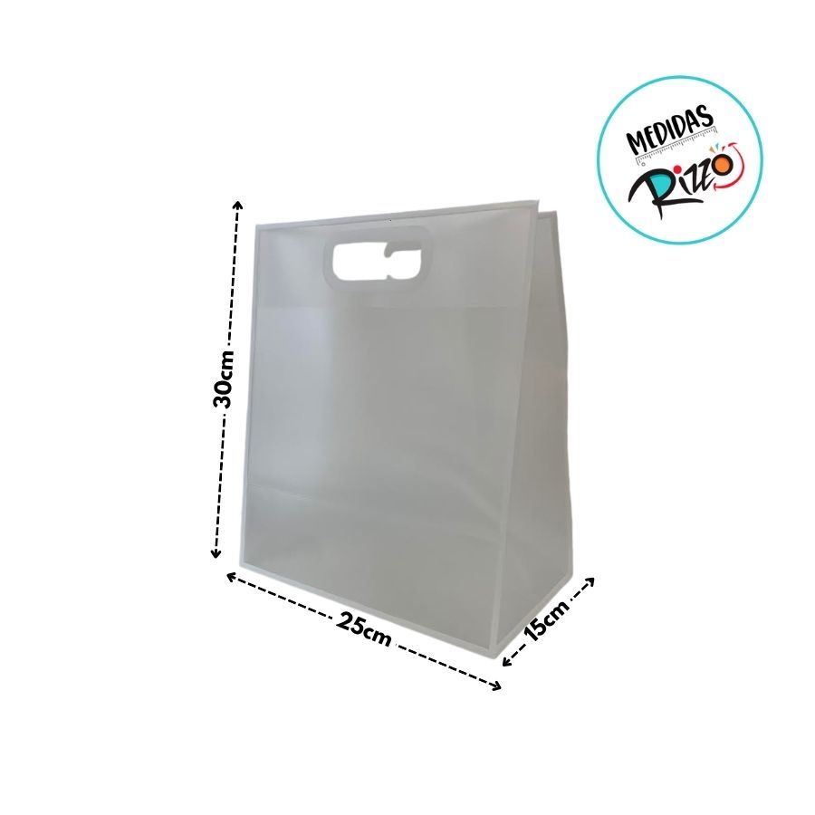 Sacola Transparente Fosca Pvc Alça Plana Branco - 30x25x15cm - 12 unidades - Rizzo