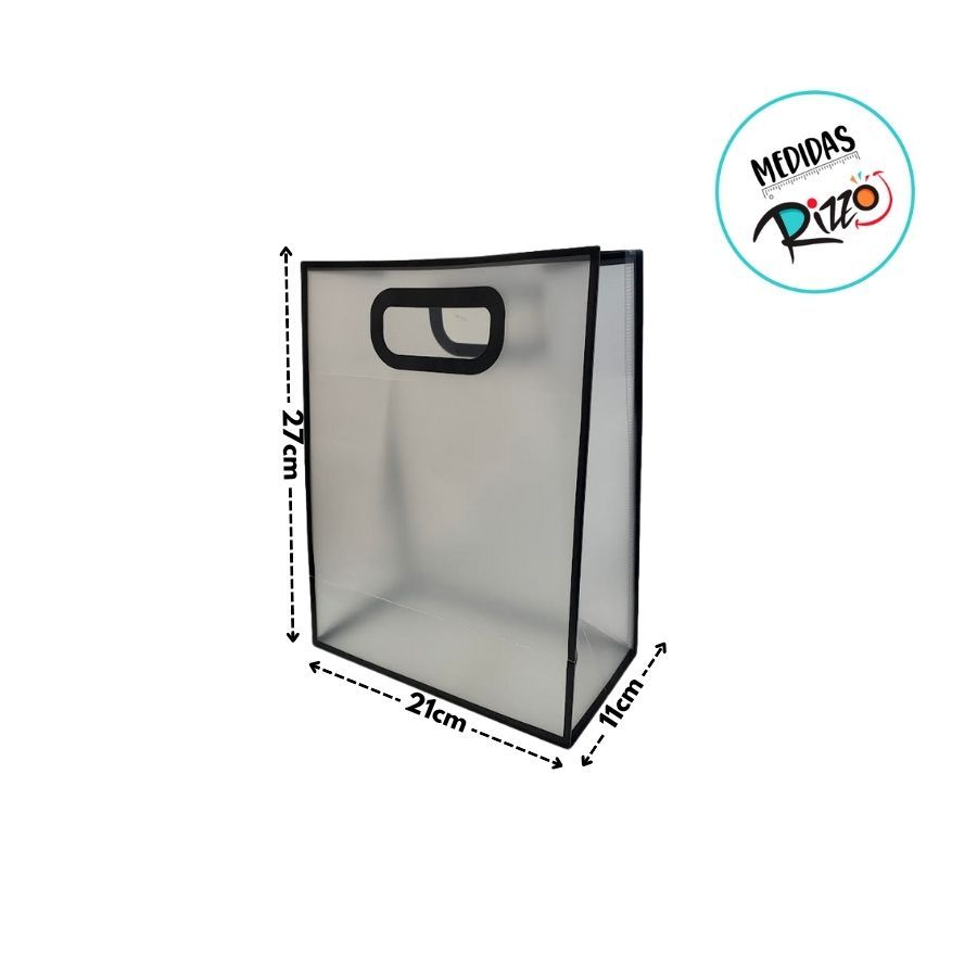 Sacola Transparente Fosca Pvc Alça Plana Preto - 27x21x11cm - 12 unidades - Rizzo