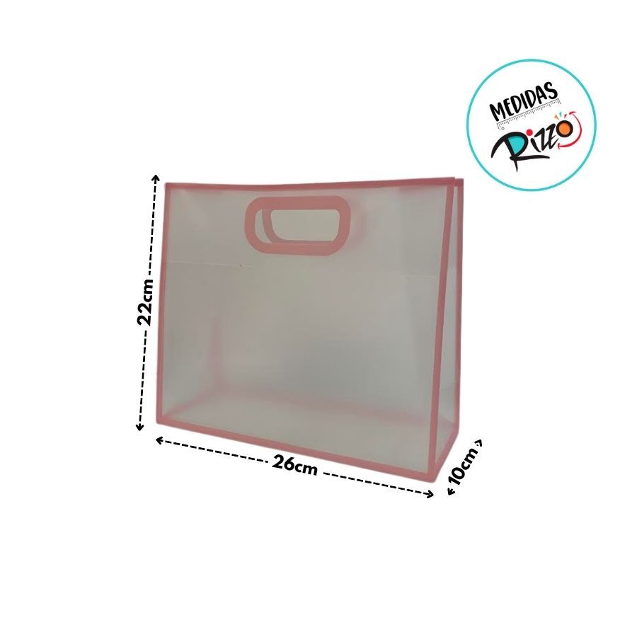 Sacola Transparente Fosca Pvc Alça Plana Rosa Bebê - 22x26x10cm - 12 unidades - Rizzo