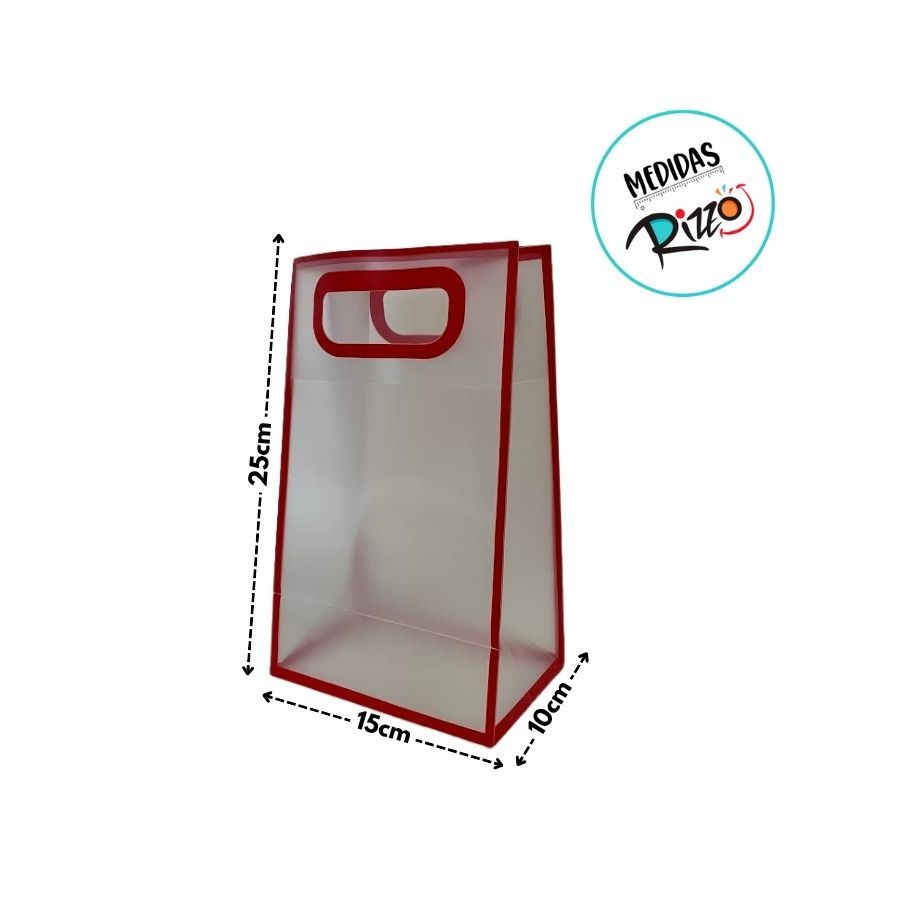 Sacola Transparente Fosca Pvc Alça Plana Vermelho - 25x15x10cm - 12 unidades - Rizzo