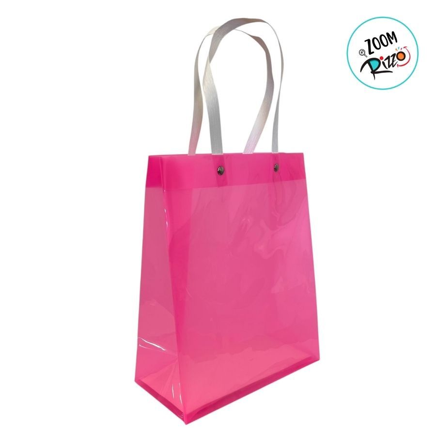 Sacola Transparente PVC com Alça de Fibra - Rosa - 24,5x19,5x9,5cm - 1 unidade - Rizzo