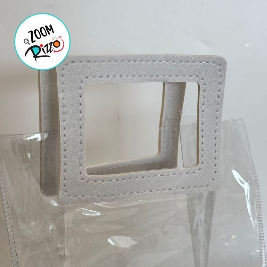 Sacola Transparente PVC com Alça Retangular Couro Branco - 24x21x11cm - 1 unidade - 1 unidade - Cromus - Rizzo