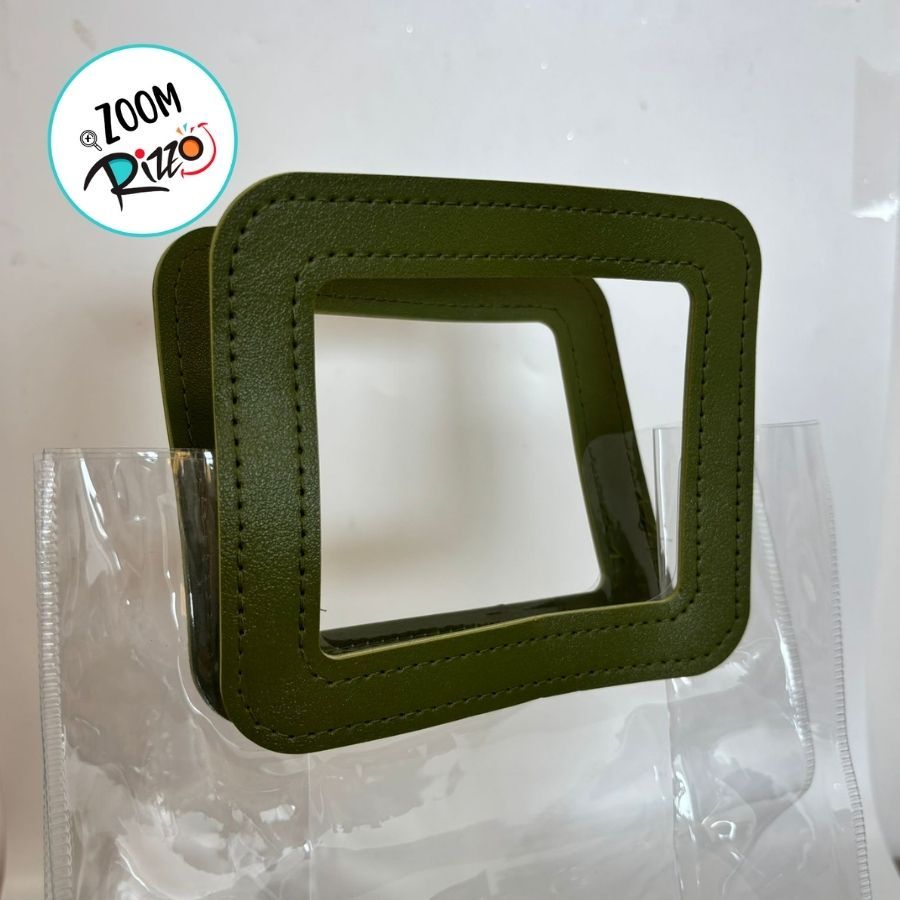 Sacola Transparente PVC com Alça Retangular Couro Verde - 24x21x11cm - 1 unidade - 1 unidade - Cromus - Rizzo