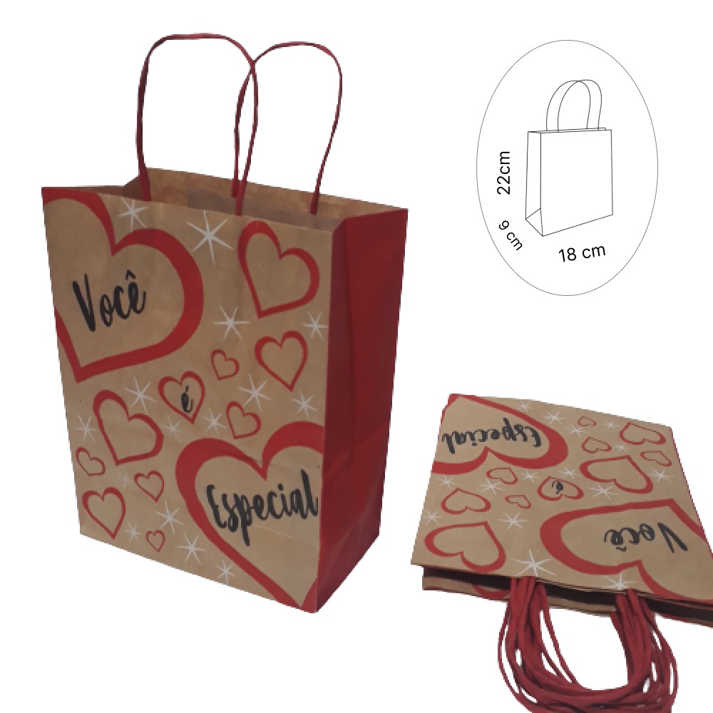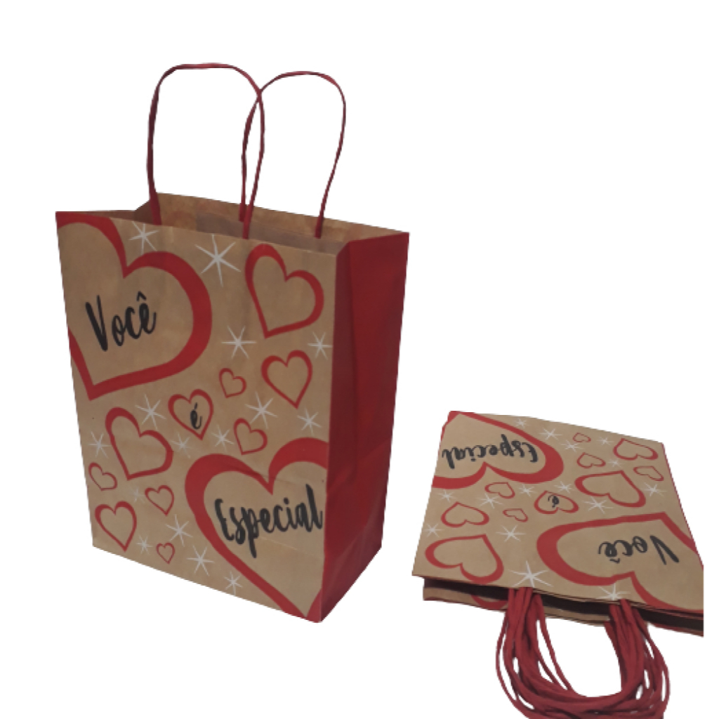 Sacolas de papel craf voce e especial - Pacote com 10 Unidades - com alça de cordão