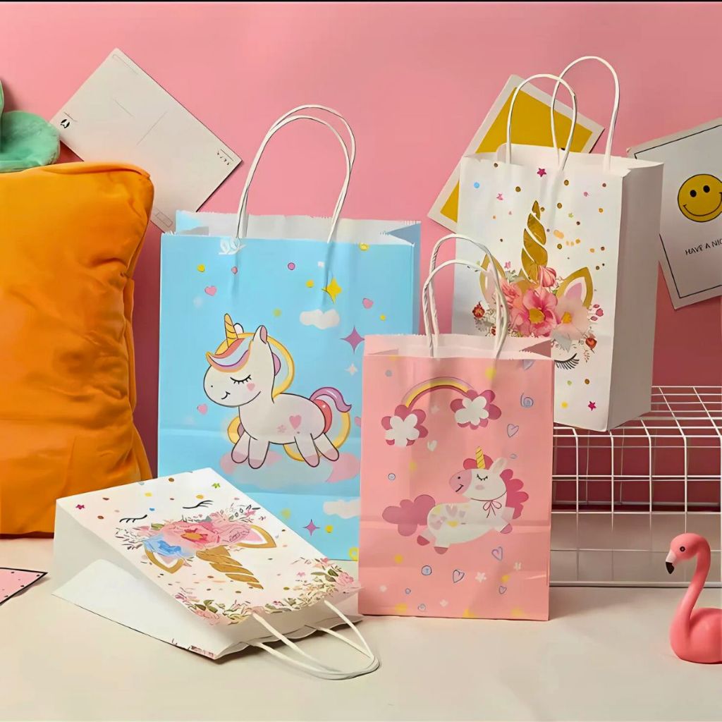 Sacolas de Papel Kraft Estampada Sacola de Lembrancinha Presente Sacola Unicórnio Personalizadas