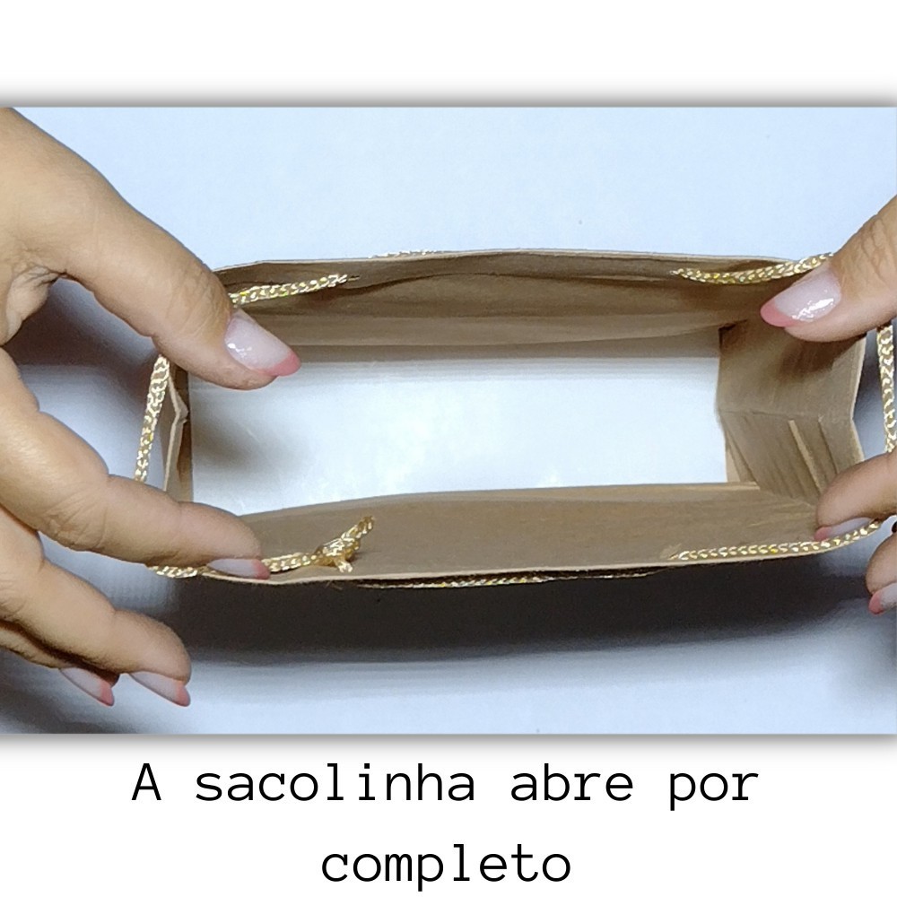 Sacolas de papel kraft. 10 a 50 unidades. Cor: Kraft Sacolinhas produzidas em papel 110 gramas. Com alças de nylon e fundo reforçado em papel cartão 190 gramas. Medidas: 34cm altura x 22cm largura x 10cm profundidade(lateral). As sacolas servem para restaurante delivery, entregas de comida, cosméticos, camisetas, bonés, chocolates, ideal para pequenas e grandes empresas que querem uma embalagem bonita e resistente, para presente, com excelente acabamento e também servem para lembranças de festa infantil, sacola surpresa e guloseimas. São melhores do que saco de papel kraft, porque nossa sacola tem alças de nylon e ficam muito mais bonitas que alças retorcidas. *Não personalizamos.