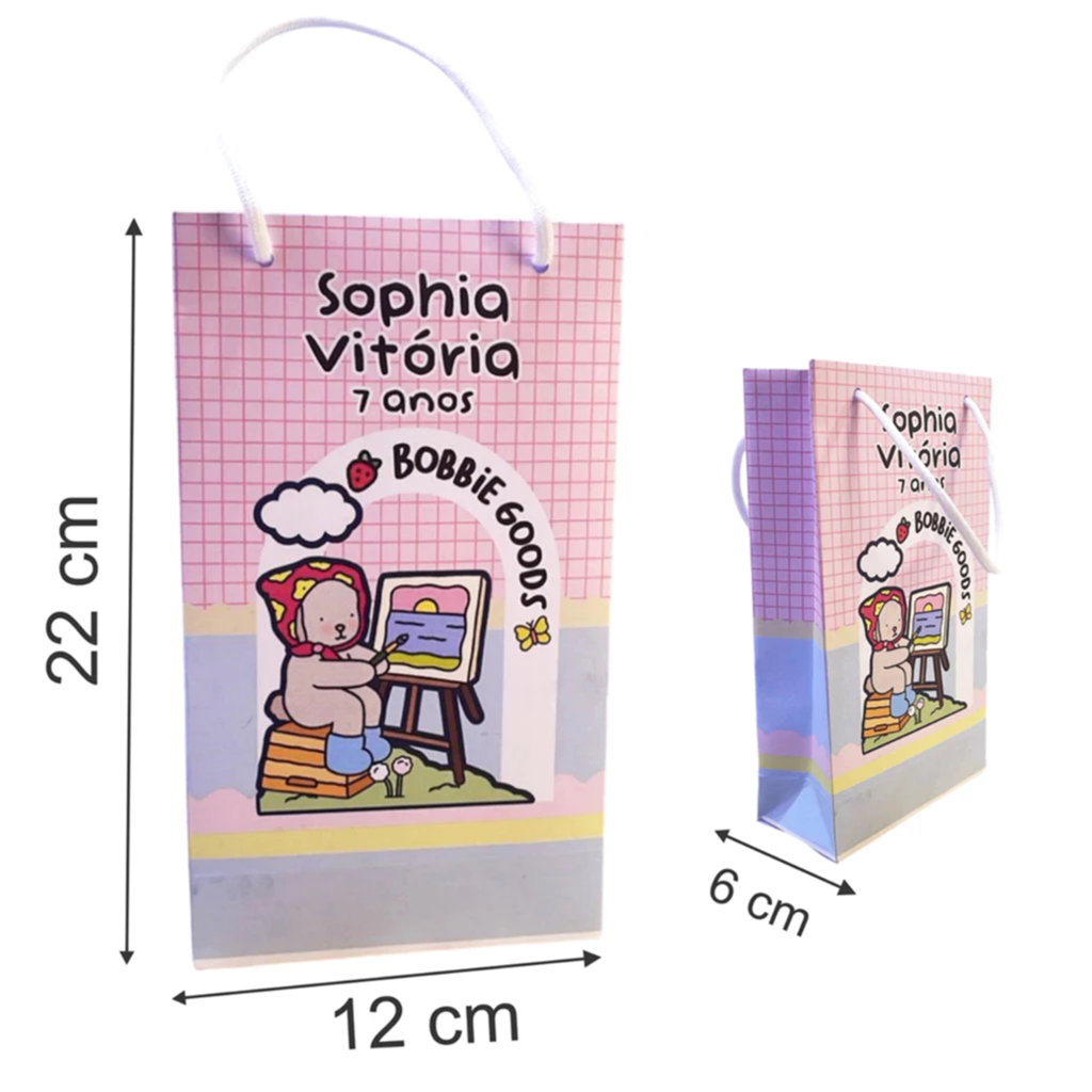 ✨ SACOLINHA PERSONALIZADA • PRONTA PARA MONTAR ✨ Ideal para lembrancinhas de aniversário, escolinha e festas infantis! • PEGUE E MONTE : A sacolinha é enviada recortada e com vinco , para você colar e montar em casa. Siga as instruções do vídeo que acompanha o produto. ✔️ Material resistente ✔️ Cores vivas ✔️ Vai personalizada com NOME e IDADE ✔️ Montagem super fácil 📏 Medidas: 22 x 12 x 6 cm 📦 O QUE VAI JUNTO: • Sacolinha personalizada • Alça branca 🔥 PRAZO: • Verifique o prazo de entrega para garantir que o pedido chegue a tempo do evento. 🎈 IDEAL PARA: • Aniversário infantil • Lembrancinhas • Kit festa ❗IMPORTANTE: Após a compra, envie NOME + IDADE para personalização. Se não enviar, sua sacolinha será enviada sem nome para não atrasar o prazo.