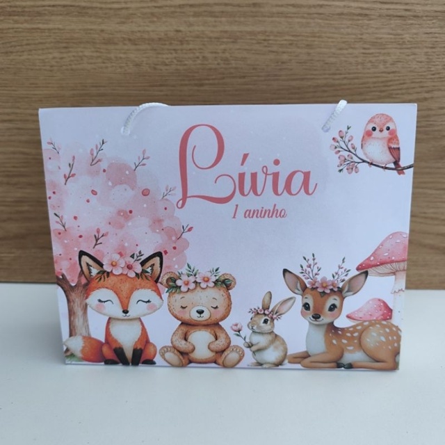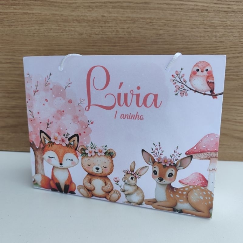 | Sacolinha personalizada Bosque Encantado - Pegue e monte este produto | R$ 29,99 | 32% | 4.9/5 | 5 |
