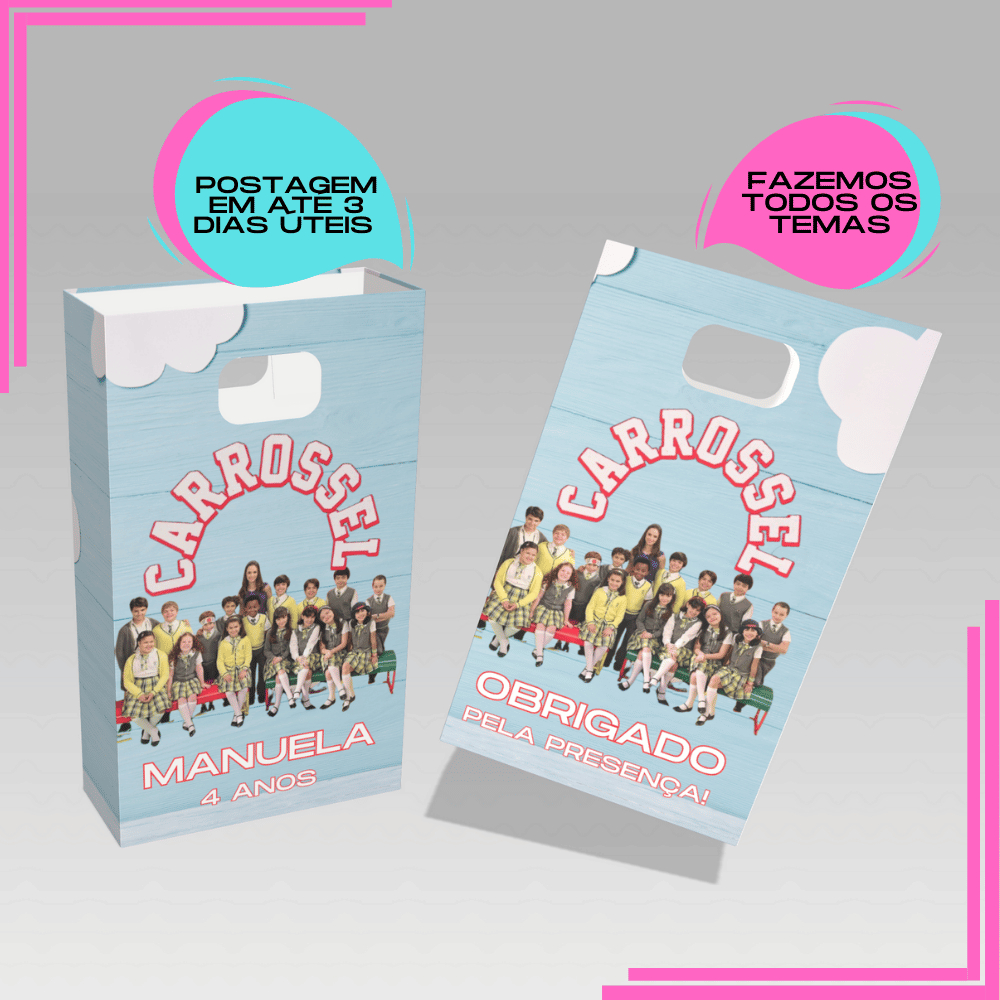 | Sacolinha Personalizada para Lembrancinha boca de palhaço carrossel este produto | R$ 14,00 | — | 5.0/5 | 1 |