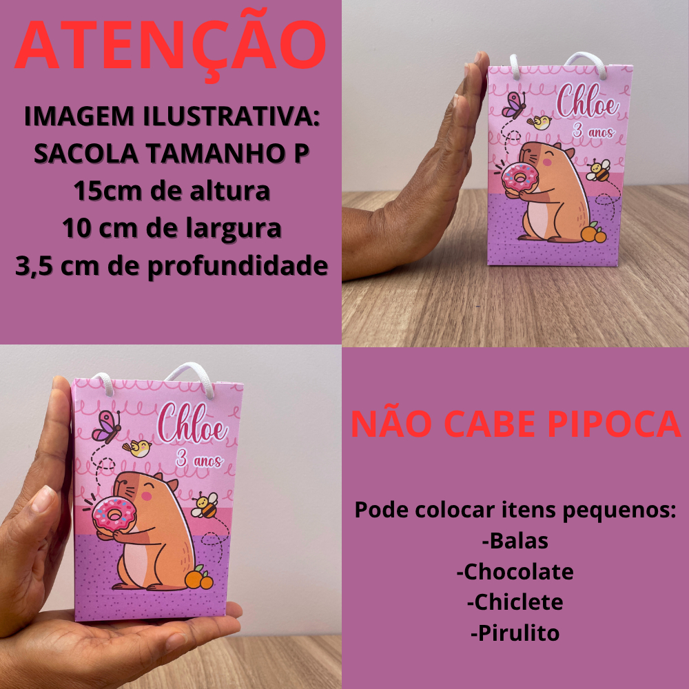 🎉 Deixe a sua festa ainda mais especial com nossas sacolinhas P personalizadas! 🎁 ✨ MODALIDADES: - PEGUE E MONTE: Sacolas lindas para colar e montar em casa, já com recorte e vinco. Na modalidade pegue e monte a colagem das sacolas é super simples, basta usar cola branca, de silicone ou quente! - NÃO ACOMPANHHA COLA. As nossas sacolas são reforçadas, por isso é necessário colar a parte superior, a lateral e o fundo para garantir a segurança de não abrir com peso das guloseimas. - SEMI-MONTADA: sacolas já coladas a parte superior (reforço das alças), colada a lateral e já com fita dupla face no fundo. Apenas para chegar na sua casa e conseguir montar de uma forma muito rápida e fácil. Somente será necessário colocar as alças que já são com ponteiras e tirar a parte branca da fita dupla face e unir o fundo. Não irá 100% montada para não danificar no transporte. 🔹 Sacolinha P: 15cm (altura) x 10cm (largura) x 3,5cm (profundidade) - UMA FOLHA POR SACOLA - NÃO CABE PIPOCA e COPOS 🔹 Personalização: Após a compra, informe o nome e a idade da criança no chat (EM ATÉ 24 HORAS). Caso contrário, enviaremos sem personalização. 💡 Detalhes Importantes: 🔹Feitas em papel offset 180g e impressão de alta qualidade. 🔹Acompanha duas alças por sacola. NÃO PRECISA AMARRAR A ALÇA, JÁ VAI COM PONTEIRA. 🔹No momento da compra, escolha qual a quantidade e a modalidade PEGUE E MONTE OU SEMI-MONTADA. 🔹FIQUE ATENTO AO PRAZO DE PRODUÇÃO. O prazo de produção é a do anúncio, lembre-se que este é um produto artesanal e precisa de tempo para ser preparado com amor. Lembre também, que ainda existe o prazo do transporte, então se baseie na última data do prazo de entrega, pois ele deve ser antes da data da sua festa. 🔹As cores dos produtos podem variar de tonalidade e cor de acordo com a configuração de cada monitor, tela de celular e claridade do local onde a foto foi tirada. 🔹Não mandamos arte para aprovação, pois a arte vai igual à do anúncio. Não fazemos alterações na arte e modelos. (Sem apliques 3D) 🔹Sugestões de recheio: bombons, balas, chicletes, pirulitos (guloseimas pequenas no geral). - NÃO CABE PIPOCA E ITENS GRANDES Não achou seu tema? Entre em contato conosco. Será um prazer desenvolver a arte para sua festa, será feito com muito carinho. Qualquer dúvida, estamos à disposição! Garanta já o seu kit e faça a festa brilhar com esse toque especial! ✨
