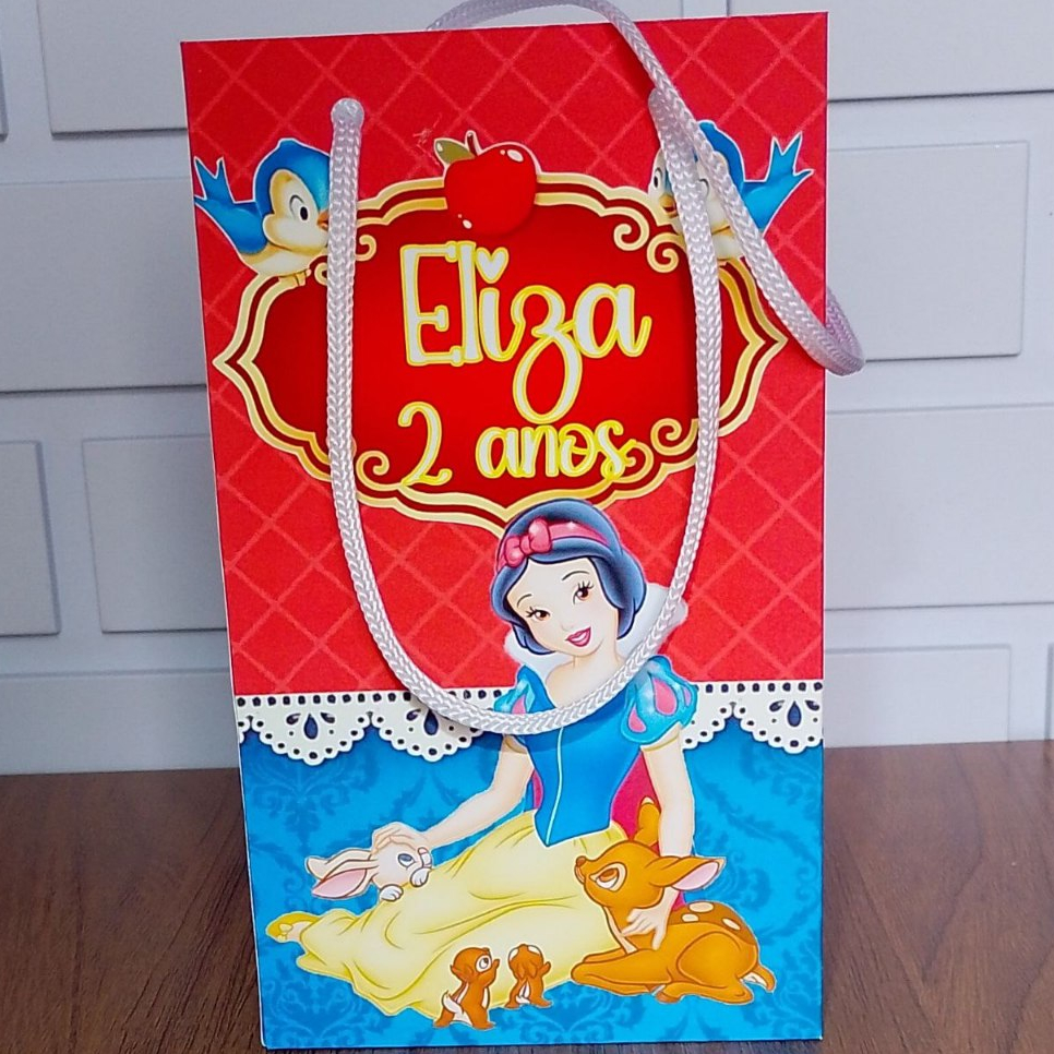 Sacolinha Personalizada Princesa Branca de Neve Aniversário Infantil Mimos e Lembrancinhas para Festa KIT PEGUE E MONTE