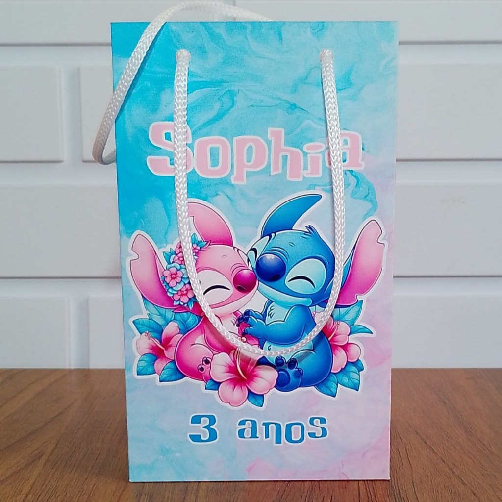 Sacolinha Personalizada Stitch e Angel Aniversário Infantil Mimos e Lembrancinhas para Festa KIT PEGUE E MONTE