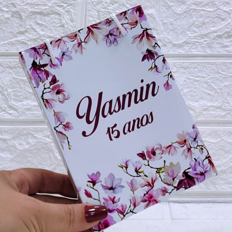 Sacolinha Surpresa FLORES Personalizada Lembrancinha, com NOME+IDADE Kit Festa 15 anos PEGUE E MONTE