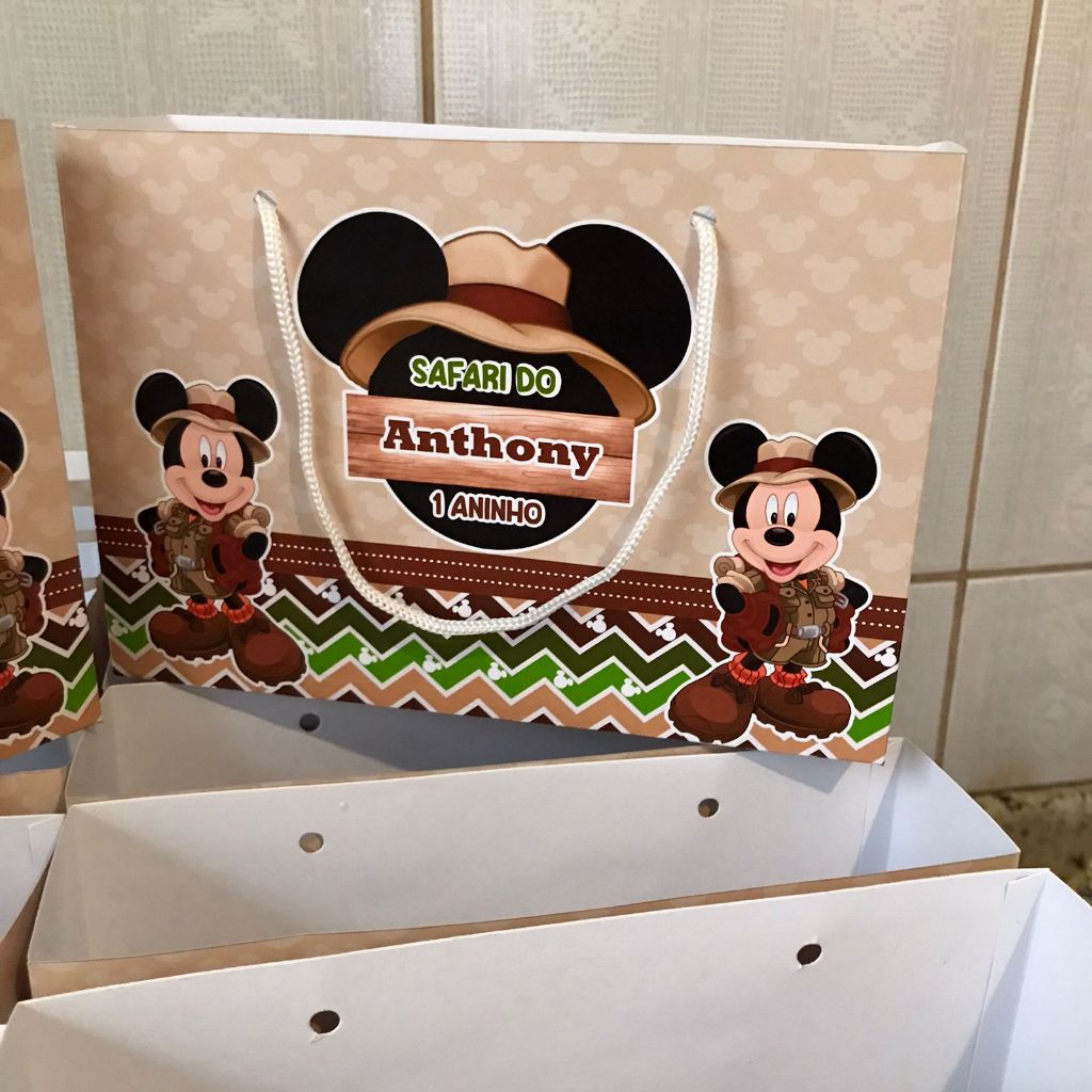 Sacolinha Surpresa Grande 20x15x5,5 cm Mickey Safari/Baby/Lembrancinhas/Festa Infantil/AniversárioPEGUE E MONTE