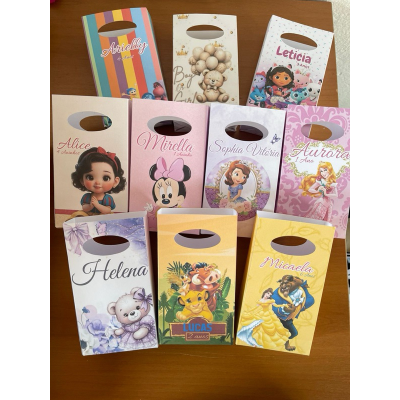 Sacolinha surpresa personalizada festa infantil qualquer tema pegue e montee