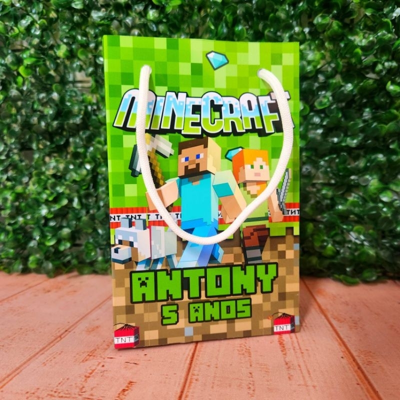 Sacolinha Surpresa Personalizada Lembrancinha de Aniversário Minecraft Festa Infantil TNT Gamer