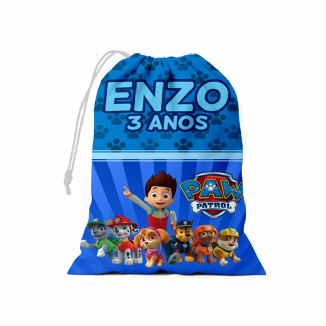 Sacolinha Surpresa Personalizado Patrulha Canina em Tecido com Nome e Idade Lembrancinha Festas