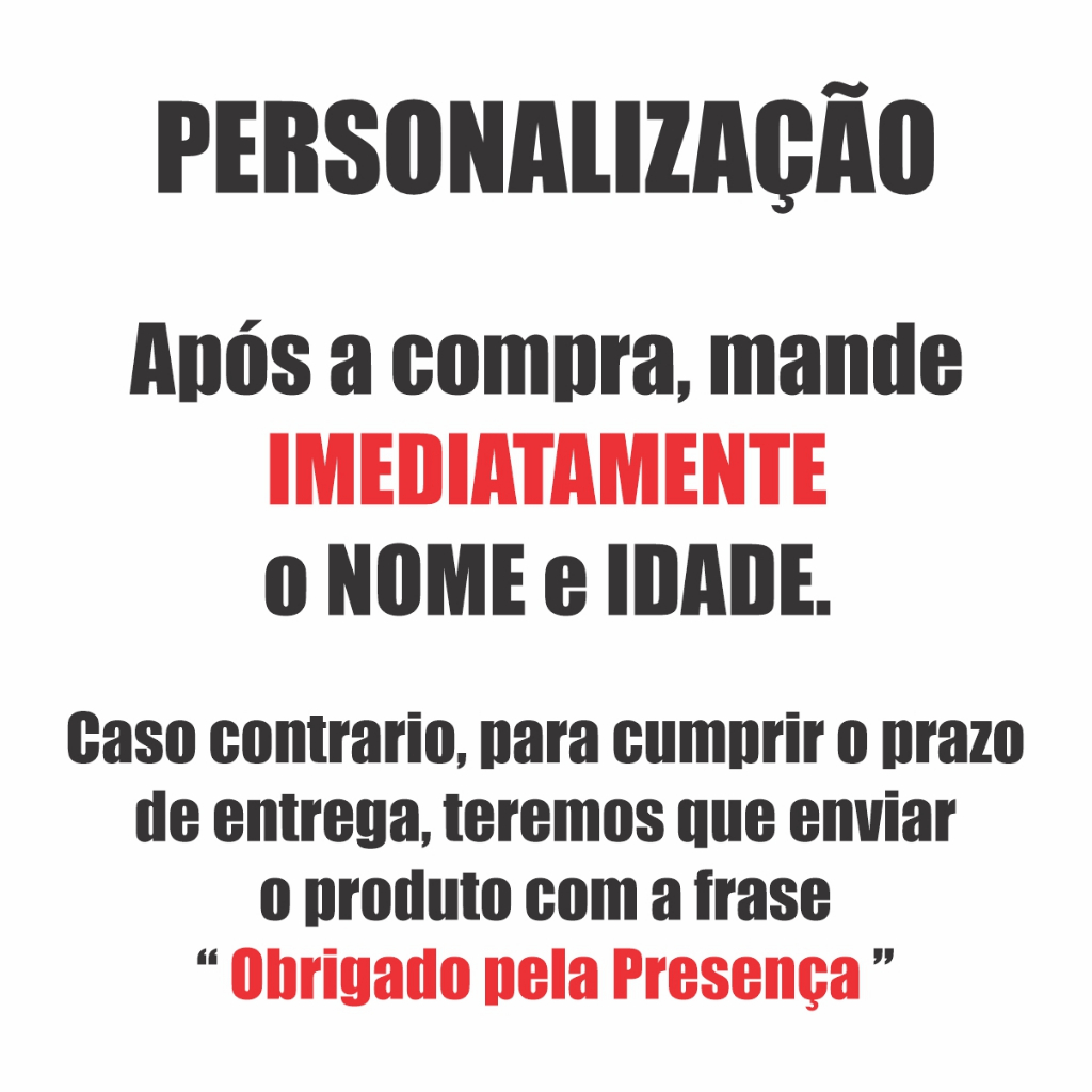 ATENÇAO: A ARTE ENVIADA SERA A MESMA DO ANUNCIO, ALTERANDO SOMENTE NOME E IDADE, SE DESEJAR OUTRO TEMA, SOLICITAR O LINK ANTES DA COMPRA!! Sacolinha Surpresa Personalizada com NOME e IDADE MATERIAL: Tecido 100% Poliester Estampa Digital de alta definição de cores estampa somente na frente MEDIDAS: 15 largura x 20 altura CM Podendo variar de 1 cm para mais ou para menos por causa da costura -Cordão jÁ incluso na sacolinhas, cor branca. ( Não acompanha doces ou brinquedo ) ASSIM QUE EFETUAR A COMPRA, NO CHAT ENCAMINHE O NOME DO ANIVERSARIANTE E IDADE !! (por exemplo: "Leandro, 3 anos"). Obs.: Não será apresentada amostra para aprovação. A estampa será a mesma da imagem deste produto. ATENÇAO: CASO NAO ENVIE, ENVIAREMOS O PRODUTO ESCRITO ( OBRIGADO PELA PRESENÇA ) PARA QUE POSSAMOS CUMRPIR COM O PRAZO, PRECISAMOS QUE ENVIE O NOME E IDADE ATE 2HS APOS O PEDIDO